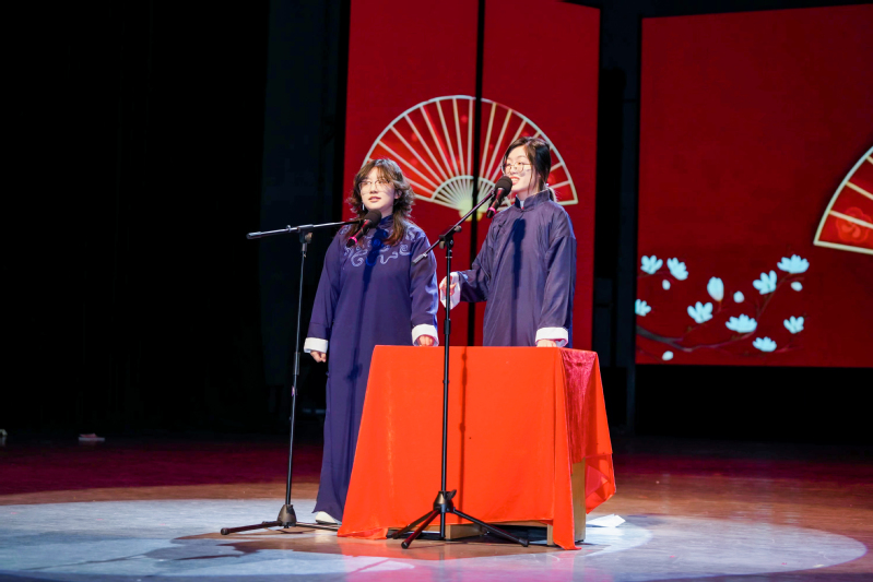 在热烈的掌声之中,文艺汇演正式拉开帷幕。上半场的演出精彩纷呈,《你要跳舞吗》以其欢快的旋律和动感的节奏,迅速点燃全场。舞之炫带来的《梦幻童话》激情四射,洋溢的青春气息扑面而来。苏子寒和徐世杰携手演唱的《大约在冬季》歌声清澈而真挚,恰似青春岁月里的溪流,纯净且充满活力。张郎哲、朱清翎演唱的《小酒窝》甜美浪漫,让观众们仿佛置身于一个充满爱与温馨的世界。赵佳怡、杨诗琪等同学带来的歌舞表演《如愿》大气磅礴,山河无恙烟火寻常,这盛世如你所愿!东吴俱乐部邓佳怡和沈可带来的相声《夜行记》诙谐幽默,为晚会带来别样的欢乐。