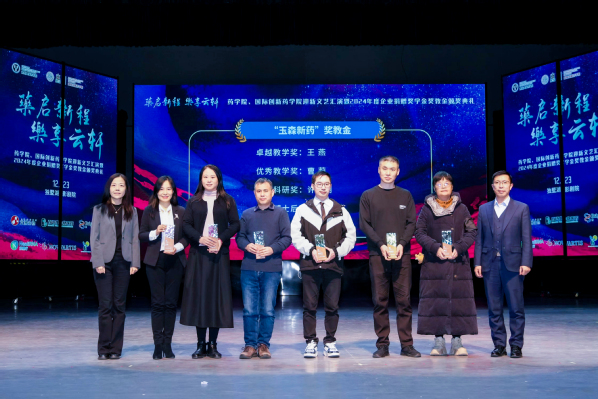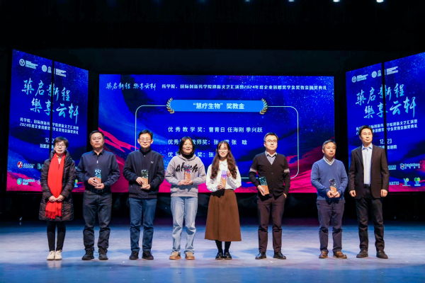 随后进行2024年度企业捐赠奖学金奖教金颁奖仪式。艾博生物、博瑞医药、慧疗生物、玉森新药等医药企业、苏州慧湖立新教育发展基金会、药学院以及国际创新药学院的领导嘉宾们共同为获奖师生颁奖。共有23位教师和160名本科生和研究生荣获药学院2024年度企业捐赠奖学金、奖教金。