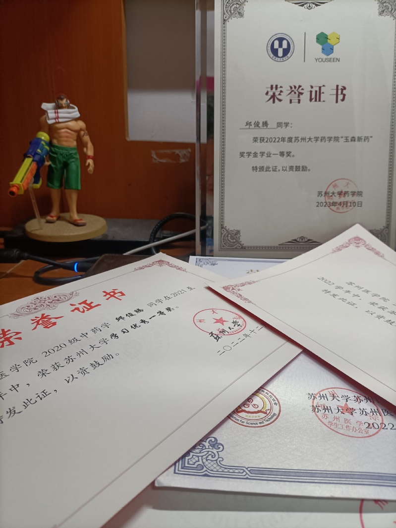邱俊腾,苏州大学药学院2020级中药学专业学生。GPA3.7,荣获多项校级奖学金。曾担任苏州大学苏州医学院锦程社的活动部部长。