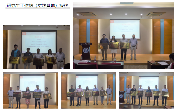 会上,副院长许国强宣读学校关于《关于公布2020年苏州大学硕士专业学位研究生实践基地和第十批研究生工作站名单的通知》(苏大研[2020]2号)、《关于公布2020年苏州大学硕士专业学位研究生实践基地和第十一批研究生工作站名单的通知》(苏大研[2020]98号)等文件,镇学初院长为7家研究生工作站和16家研究生专业实践基地授牌。