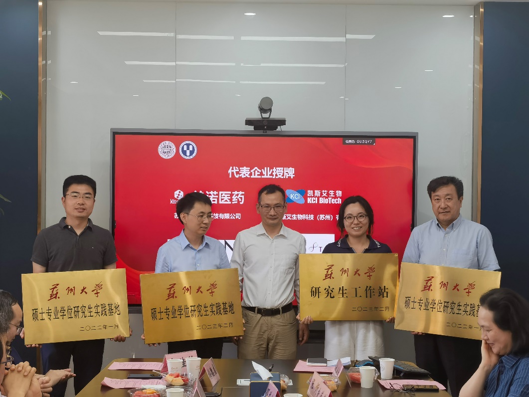 6月27日下午,苏州大学研究生工作站(实践基地)授牌暨药学院产教融合创新基地签约与产业教授(兼职导师)聘任仪式在药学院云轩楼1323会议室举行。药学院领导、苏州生物医药产业园领导、生物医药企业负责人及专家等30余人出席活动。本次活动由院长助理邓益斌主持。