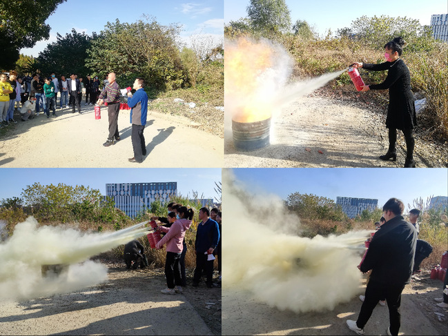 疏散演练结束后,师生移步云轩楼东南侧,保卫处刘风副处长和徐荣老师对灭火器的具体用法进行讲解及示范,并组织师生有序参加灭火器实战演练。