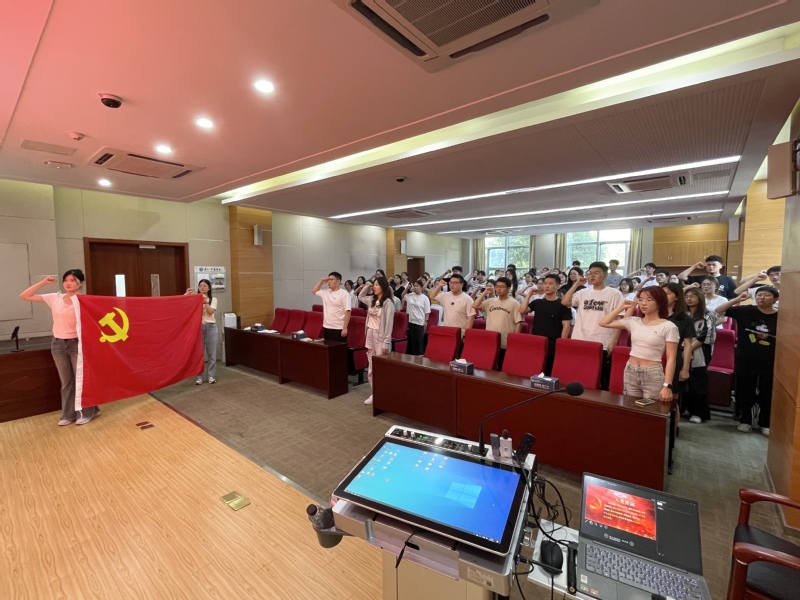 随后,在研究生第四党支部书记杨斯淇的领誓下,全体党员面向党旗,高举右拳,重温入党誓词。“我志愿加入中国共产党……”铿锵有力的誓言回荡在整个会场,表达了同志们“不忘初心、牢记使命”的坚定信念。