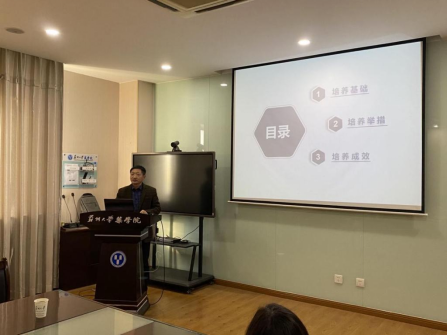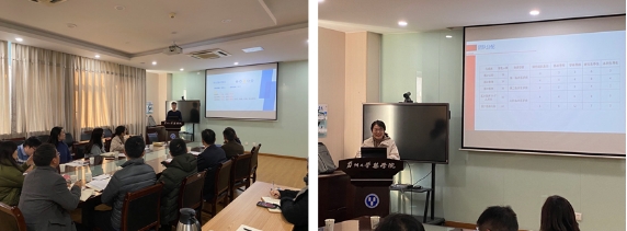 首先,负责药学院本科生工作的学工辅导员沈君老师从学生的基本情况、就业情况和科研情况三个方面作了详实的汇报。学工办蔡莉老师也向与会人员介绍了“本科生成长陪伴计划”推进的总体思路、目前的工作进展和考核评价体系,并对未来的工作设想进行了说明。