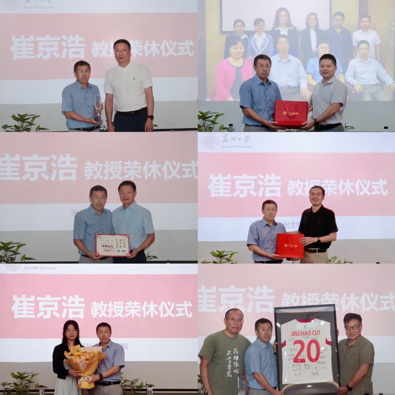 9月10日下午,药学院党委在2301会议室举行“教师节庆祝大会暨崔京浩教授荣休仪式”。学院党委徐小乐书记、汪维鹏副院长、金雪明副院长、党支部书记、教师代表、近3年新进教师及学生代表齐聚一堂,共同致敬崔京浩教授从教30周年的育人历程。