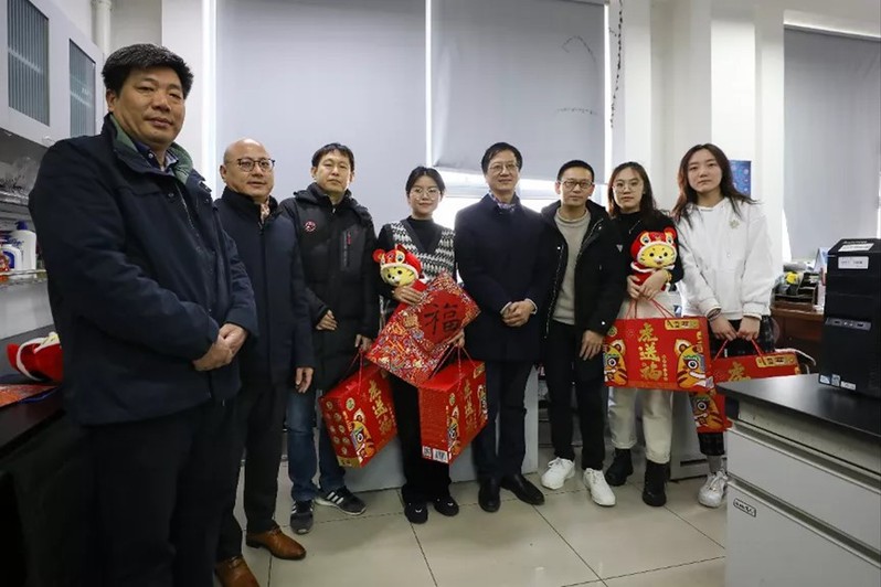 2022年1月31日除夕,校党委常委、副校长姜建明带队到药学院走访慰问春节留校师生代表并送上诚挚的新春祝福。陪同走访慰问的有校长办公室主任洪晔、研究生院张进平院长、党委研究生工作部茅海燕部长、后勤处仇玉山处长等。
