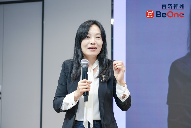 药学院院长助理王燕老师代表学校发言,她对百济神州在创新药领域的研发实力与产业化能力表示肯定,并期待以此次活动为契机,未来双方能够在人才培养、科研交流等方面深化合作。
