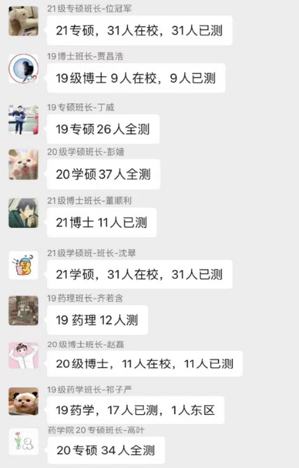 疫情爆发以来,为了更准确协助学校、学院掌握学生情况,做到底数清楚、精准全面,学院10位学生班长积极响应号召,坚守班干部职责,配合学院每日精准摸排所有在校同学的具体情况,能够做到逐一确认、定时汇报、逐条核实,直到确认上报信息准备无误,时刻践行着学生干部的使命和担当。