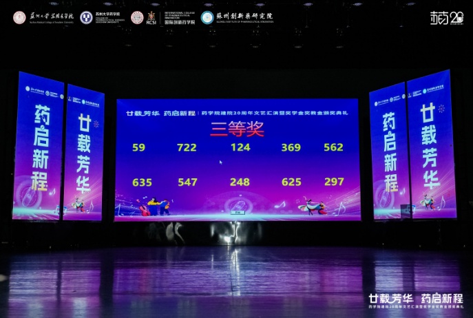 2025年12月21日晚,“廿载芳华,藥启新程”药学院建院20周年文艺汇演暨2025年度企业捐赠奖学金奖教金颁奖典礼在独墅湖影剧院隆重举行。