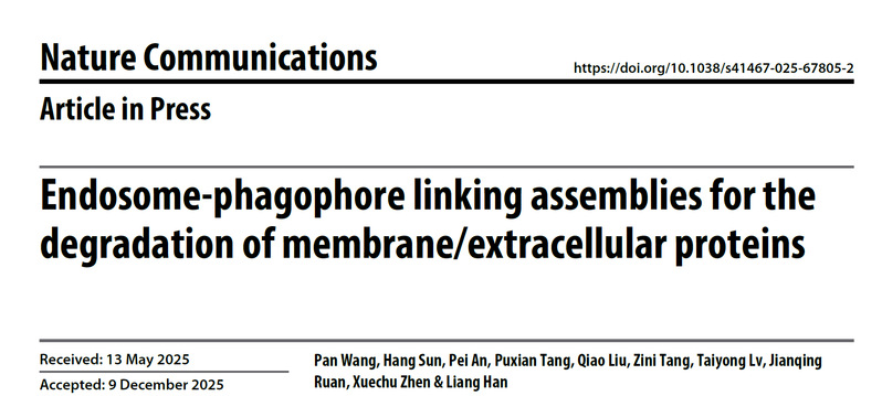Wang, P., Sun, H., An, P. et al. Endosome-phagophore linking assemblies for the degradation of membrane/ extracellular proteins. Nat Commun (2025).