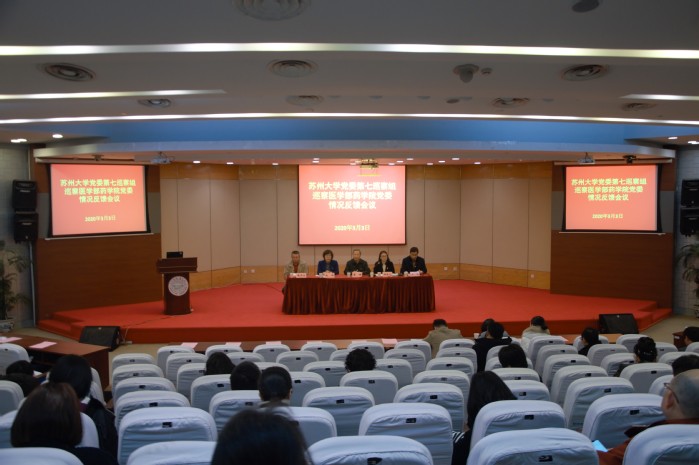 首先,第七巡察组组长薛辉向学院反馈此次巡察情况。他指出,近三年来,医学部药学院党委能坚持以习近平新时代中国特色社会主义思想为指导,不断增强“四个意识”、坚定“四个自信”、做到“两个维护”,围绕立德树人根本任务,认真贯彻落实党政共同负责制,现任党政班子团结和谐,氛围融洽,积极推动学院发展,教职工对班子的认可度较高;但巡察中也发现一些问题、不足以及薄弱环节。针对发现问题,巡察组提出如下整改建议:以政治建设为统领,充分发挥院党委的政治核心作用;切实履行“两个责任”,持续推动全面从严治党;树立以师生为中心的发展理念,全面提升人才培养质量;以主题教育、巡察为契机,建立长效机制;进一步重视教育整改,把巡察整改与巩固拓展“不忘初心、牢记使命”主题教育成果结合起来,注重贯通整改、系统整改,以钉钉子精神狠抓落实,建立常态化、长效机制。