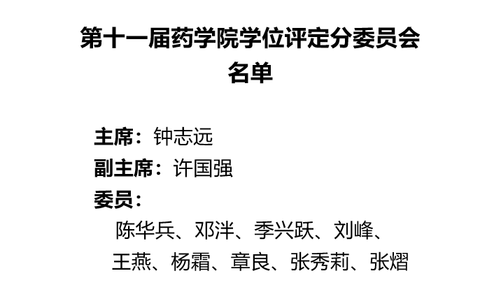 按照学校《关于做好苏州大学学位评定委员会换届工作的通知》的要求,现将药学院评选的新一届学位评定分委员会名单予以公示: