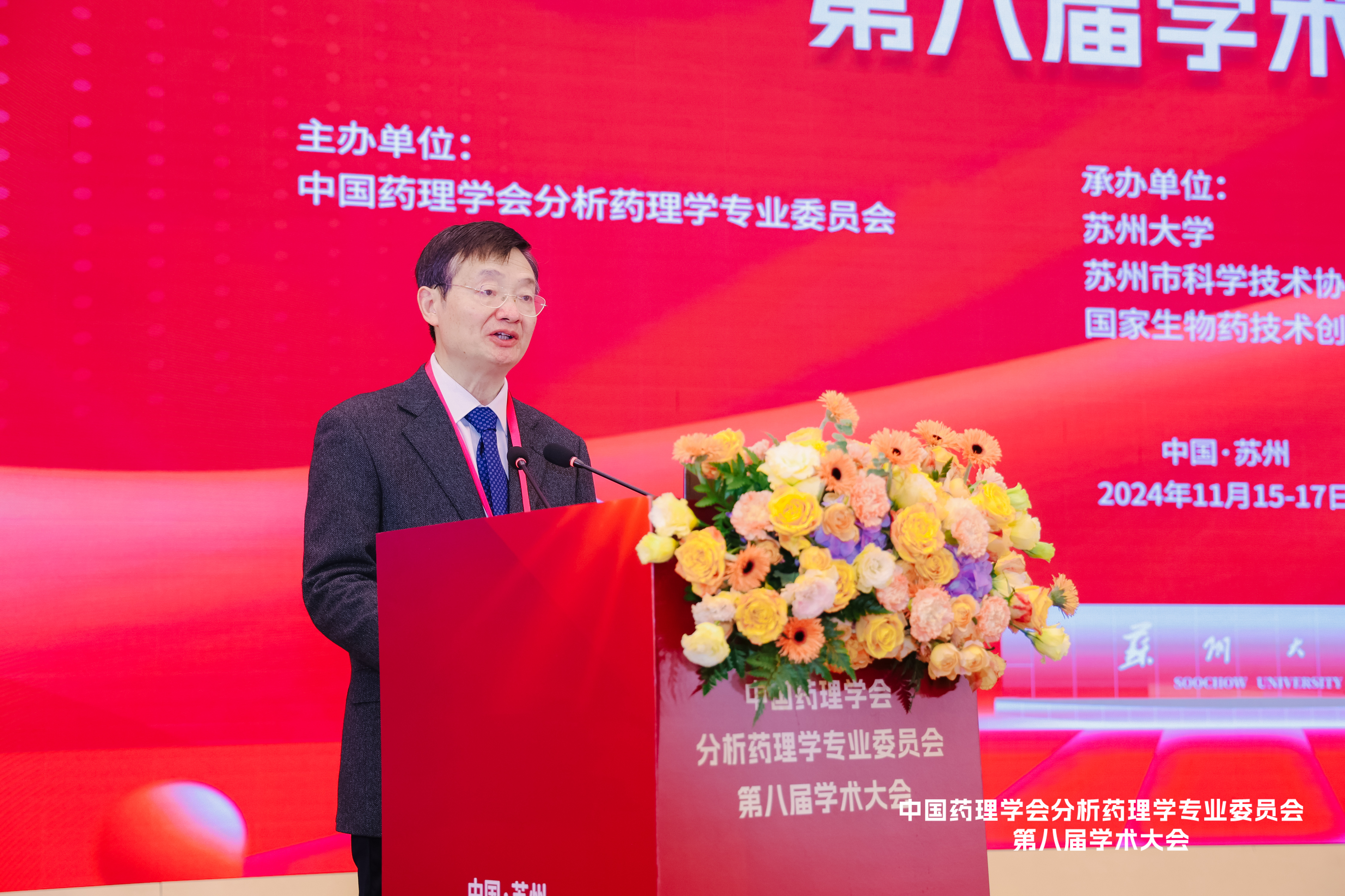 11月15-17日,由中国药理学会分析药理学专业委员会主办,苏州大学、苏州市科学技术协会和国家生物药技术创新中心承办,中国人民解放军东部战区总医院协办的中国药理学会分析药理学专业委员会第八届学术大会在苏州成功召开。大会面向人民生命健康,以“交叉融合孕育新思想,分析药理助力创新药”为主题,汇聚不同领域专家,促进学科交叉融合,激发学术新思想,加速创新成果转化,推动药物新质生产力发展。中国工程院院士、苏州大学校长应汉杰,中国工程院院士、中国药科大学教授王广基,中国药科大学党委常委、副校长杨勇,以及来自清华大学、浙江大学、南京大学等62所科研院所、医院和企业的400余位代表出席大会。