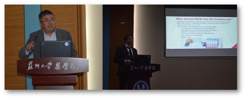 随后,来自药学院的镇学初、汪维鹏、许国强、陈华兵、刘密、丁大伟、应征、张慧灵、盛瑞、张熠、杨增杰、纳米学院的彭睿等教授,爱尔兰皇家外科医学院的Darran O’Connor、Fergal O’Brien、Sally Ann Cryan、Olga Piskareva、Alaire McCoy、Jochen Prehn、Gianpiero Cavalleri、Tracy Robson、Annie Curtis等教授围绕纳米药物、神经科学、癌症等研究领域的前沿学术问题作了精彩的学术报告,并进行了积极的互动交流,大大促进了两校师生、科研人员的科研交流,营造浓厚的学术氛围。学术报告后,双方针对各自感兴趣的研究方向,在科学研究和联合培养博士生等内容进行了一对一的深入沟通与研讨。这一会议为两校后续交流和研究生培养奠定了良好的基础。
