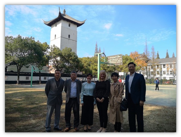 次日上午,我校副校长杨一心在天赐庄校区红楼会议中心接见了爱尔兰皇家外科医学院代表团成员Tracy Robson教授和Helena博士,国际交流处副处长资虹、药学院院长镇学初和张小虎教授参加接见。宾主双方就苏州大学未来校区建设中有关合作事项进行了深入探讨和交流。
