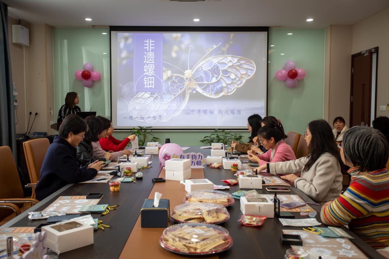 春风送暖,芳华绽放。在第116个国际“三八”妇女节来临之际,为丰富学院女教职工精神文化生活,展现新时代女性匠心与风采,苏州大学药学院分工会精心举办“螺钿映芳华 巧手缀春光”非遗螺钿胸针DIY活动。学院党委书记徐小乐、副院长金雪明、工会主席高博与学院女教职工齐聚一堂,在指尖创意中邂逅非遗之美,共度温馨且有意义的节日。
