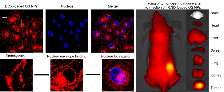 该研究以主要成分为二氧化硅的天然无定型蛋白页岩为原料,采用超声乳化—溶剂挥发—梯度离心相结合的方法制备了无定型介孔蛋白页岩载体。该无定型载体相比化学合成二氧化硅纳米粒基于结晶型的细胞毒性,具有良好的生物安全性。在肿瘤药物递送的应用方面,基于疏水相互作用负载疏水性药物阿霉素后,可通过增加癌细胞的药物摄取来提高诱导肿瘤细胞凋亡的效率;给药系统可能通过介孔结构导致的强吸附性与细胞膜高效结合,进而通过内吞途径进入细胞;再通过强吸附性与细胞核膜结合,促进阿霉素入核。给药系统特异性蓄积于肿瘤,蓄积浓度显著高于肝脾肾,具有优于游离阿霉素的抗肿瘤治疗效果。该工作有望为二氧化硅纳米粒作为药物载体的设计与开发提供新的思路。