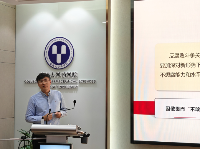 随后,学院党委委员,副院长黄小波以“学纪律,明规矩,守廉洁”为主题讲授廉洁教育专题党课。通过引用典型案例、分析当前形势,使毕业生党员深刻认识到廉政建设的重要性和紧迫性。同时,还就如何在实际工作中践行廉洁自律准则、防范和抵制腐败行为等方面进行了具体指导。