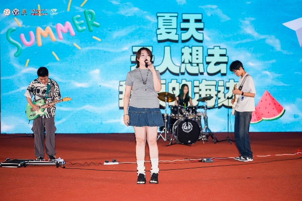 伴随着夏日傍晚的夕阳,嘉年华表演正式拉开帷幕。夏夜的下沉广场上响起青春飞扬的音乐,现场的观众们徜徉在动听的旋律中,享受了一场绝佳的视听盛宴。悠扬婉转的弹唱表演,现场的观众也随着节拍一起摇摆,一同沉浸在夏夜月白风清的氛围之中;动感又充满活力的舞蹈又如夜里的一把火,点燃了现场的气氛;节奏强劲的乐队表演配合观众的欢呼,更是将活动的气氛炒到了极点。