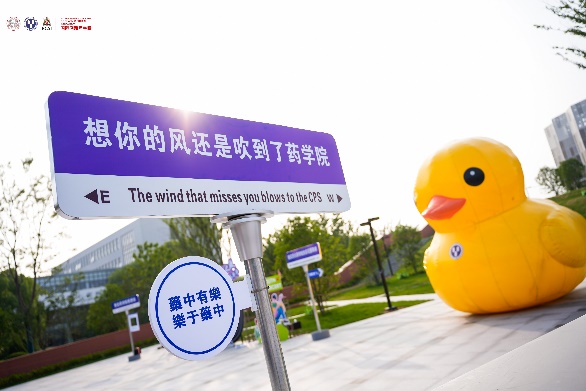 本次嘉年华活动现场还有药学院、国际创新药学院以及各大企业的展台,为大家提供招聘信息、创新产品介绍、创新技术展示等内容,各大展台也准备了精美的小礼品和饮料,让同学们在观赏精彩节目的同时也能轻松愉快。而一旁的嘉年华打卡墙更是吸引了不少同学前来拍照打卡,留下自己与药学院的合影。