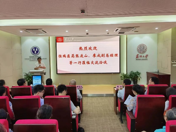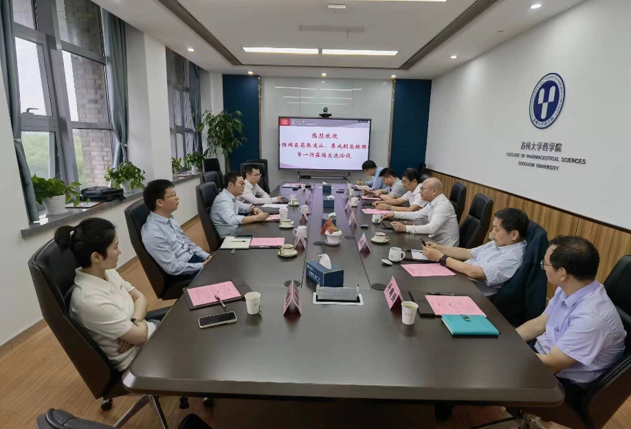 6月28日上午,江苏恒瑞医药股份有限公司副总经理张连山、廖成,上海盛迪医药有限公司副总经理杨昌永、研发总监任文明等一行来我院交流洽谈。本次会面,是继张连山副总经理于6月5日造访交流后,率队前来开展的进一步洽谈,以尽快推进双方的深度合作。