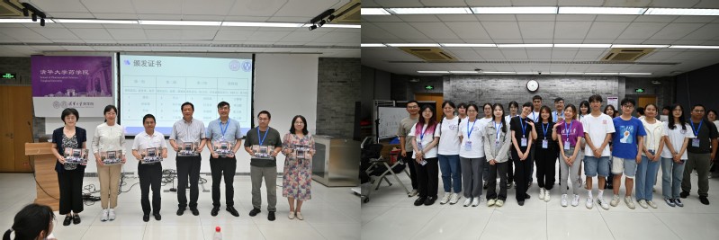 闭幕式的最后环节,清华大学药学院为参与本次交流活动的17名同学颁发证书,与会人员合影留念。至此,本次研学活动落下帷幕。