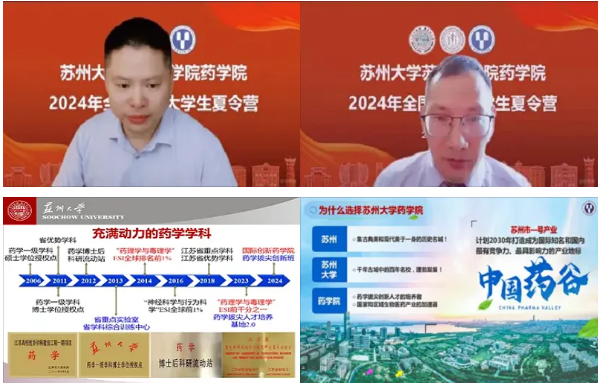 2024年7月22日至23日,“苏州大学苏州医学院药学院2024年全国优秀大学生夏令营”成功举办。本次夏令营吸引了来自全国105所高校的303名三年级优秀本科生报名,最终115名同学通过初审作为正式营员参加了夏令营活动。本次夏令营采取线上和线下结合的模式,分两天举行,通过系列宣讲和讨论交流,从不同角度对药学院的师资、科研、平台、研究生教育和培养做了全面的介绍,并对营员进行了专业知识和外语水平的综合素质考核。