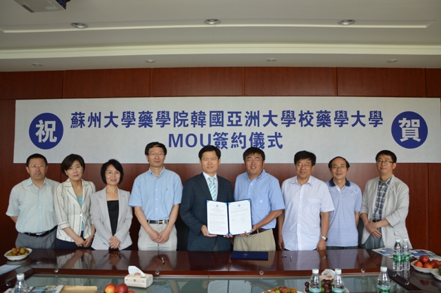 上午10:00,韩国亚洲大学药学院与苏州大学药学院合作交流座谈会和MOU签约仪式在云轩楼1323会议室举行。我院院长镇学初、党委书记龚政、副院长张学农、秦正红等学院领导及崔京浩教授出席交流座谈。交流座谈会及签约仪式由龚政书记主持。