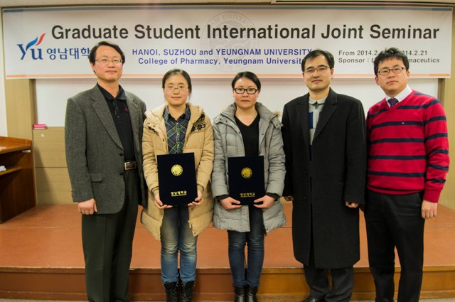 2月17日至2月22日,应韩国岭南大学药学院的邀请,我院朱巧玲、王业东两名研究生参加了岭南大学举办的药学研究生学术研讨会和为期一周的学术交流活动。此次交流活动邀请了来自苏州大学、越南河内大学等高校的药学方向研究生参加。