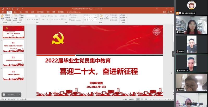 为了强化毕业生党员的党员意识,提高毕业生党员的党性修养、坚定理想信念,引导毕业生党员脚踏实地、担当作为,在新的岗位上进一步发挥先锋模范带头作用,6月15日,我院组织开展了“喜迎二十大,奋进新征程”毕业生党员集中教育活动,学院党委王欣书记和2022届毕业研究生党员参会。