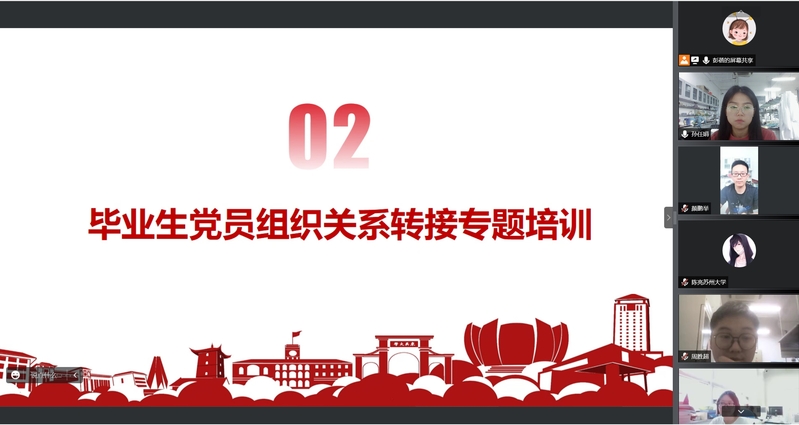 学院组织人事秘书彭蓓就毕业生党员组织关系转移等相关工作作了专题培训,强调了组织关系转移的纪律以及按时完成转接的重要性,并进行即时答疑,助力毕业生党员顺利落实组织关系转接。