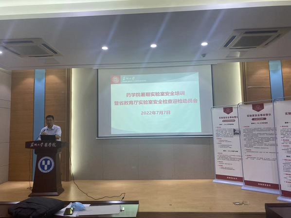 为有效落实暑假期间药学院实验室安全管理工作,保障师生员工人身安全,药学院于2022年7月7日组织进行暑期实验室安全培训—暨省教育厅实验室安全检查迎检动员会。培训方式采取线下线上相结合的方式进行,各课题组安全员参加线下培训,其余所有人员(包括但不限于:安全责任教师、做实验的教师、研究员、博士后、博士生、研究生、本科生、联合培养研究生等)参加线上培训。