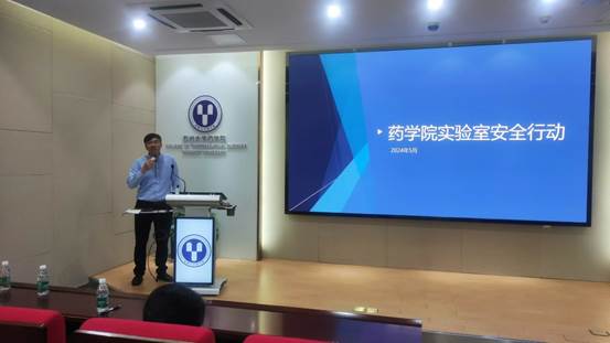 为深入贯彻落实上级关于实验室安全管理的工作部署,确保实验室安全有序运行,药学院于2024年5月23日下午在云轩楼2108会议举行了药学院实验室安全培训暨实验室安全行动动员会议。药学院全体实验室安全责任教师和研究生安全员出席会议,会议由药学院副院长黄小波主持。