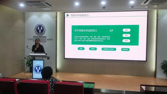 医学院安委会蒋芸老师为参会师生作了《危化品管理培训》和《安全防范与措施:用电安全教育》两场实验室安全培训讲座。在危化品管理培训中,她全面地介绍了危化品的相关法律法规,危化品尤其是管制品的管理要求,详细描述了剧毒品的采购、领用、使用、调剂、盘存和废弃物处置的具体流程。在用电安全教育培训中,她用大量生动的案例深入讲解了实验室安全用电规范、常见隐患及其应急处置措施等安全用电常识。