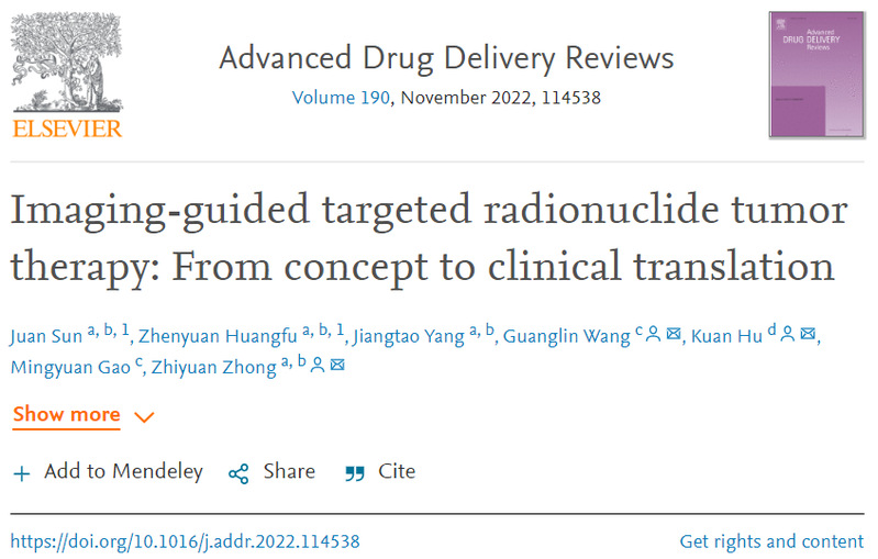 孙娟和皇甫贞元为该文共同第一作者。本研究由国家自然科学基金(21976128)、放射医学与防护国家重点实验室、江苏省自然科学基金(BK20200100)等科研资助。论文全文链接: https://doi.org/10.1016/j.addr.2022.114538。