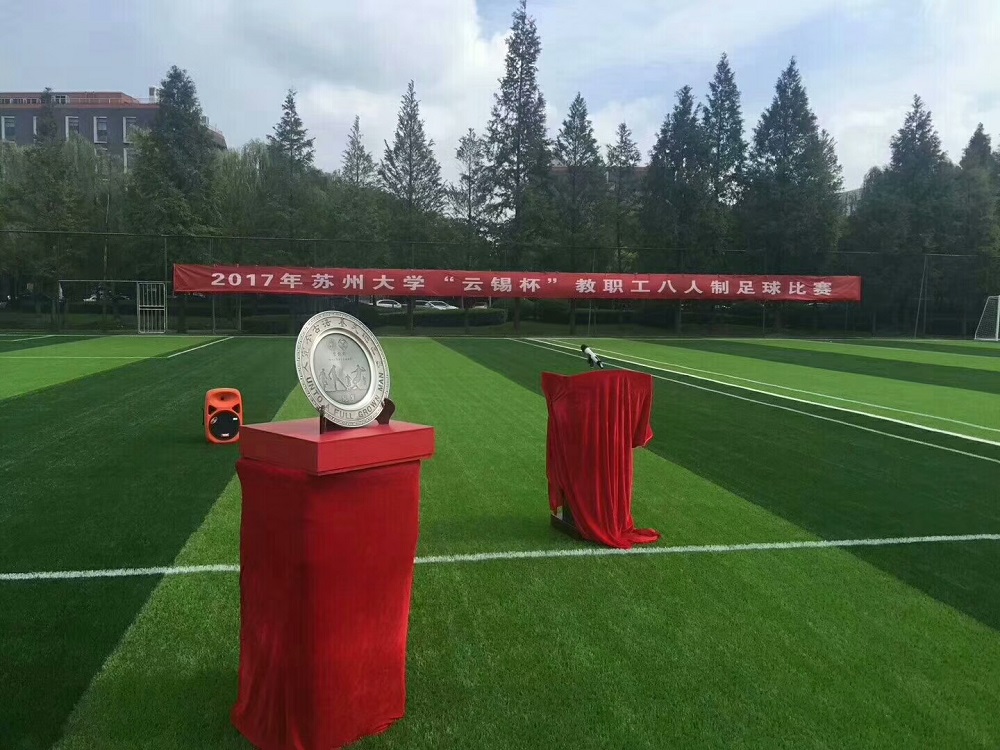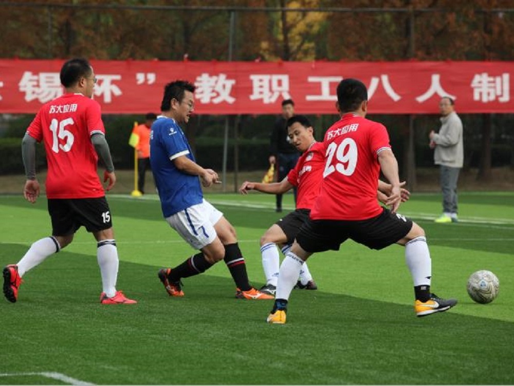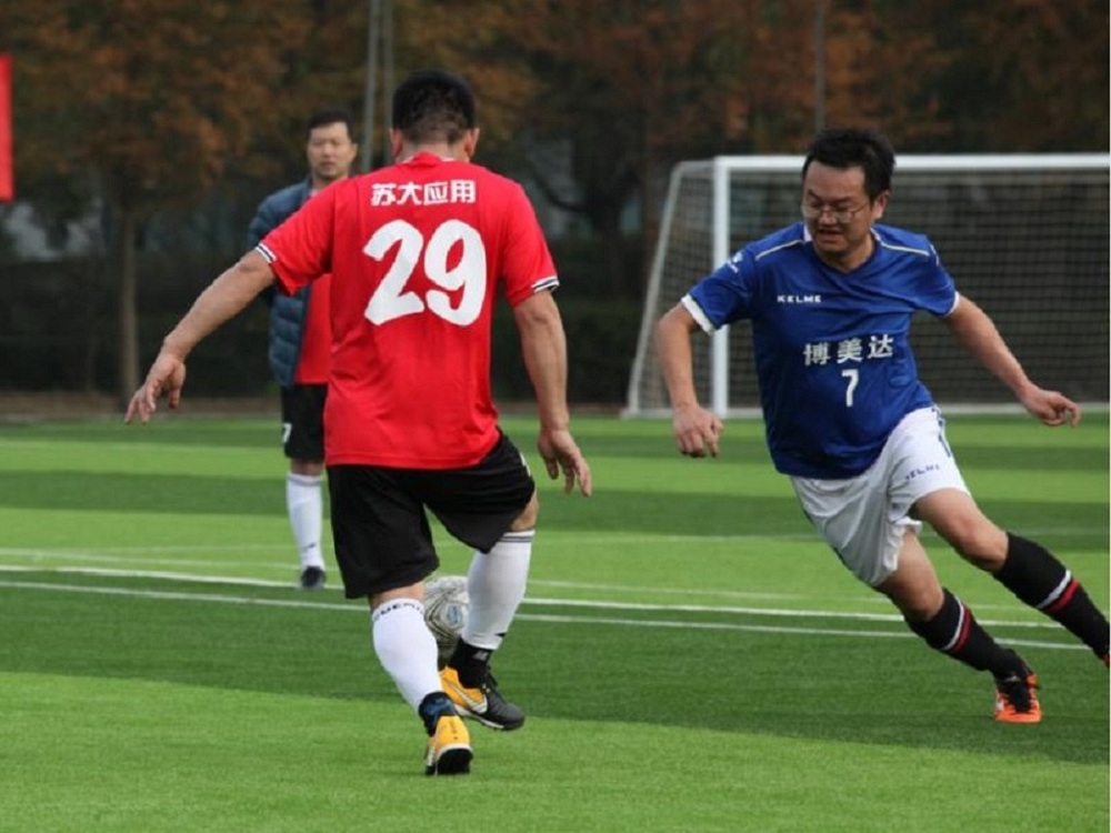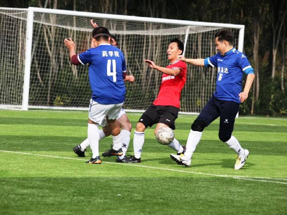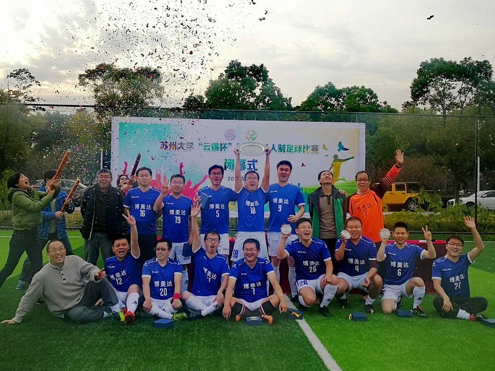 此次足球赛在云锡集团的大力支持下,由苏州大学工会主办、苏州大学教工足球协会承办、苏州大学体育学院协办。药学院足球队一共历经了与纳米学院狭路相逢的开始、与艺术学院酣畅淋漓的胜利、与附儿医院绝处逢生的好运、与数理联队棋逢对手的较量、与体育学院愈战愈勇的信念、与应用学院巅峰对决的斗志等6场激烈比赛最终完美登顶,14名队员以高昂的斗志、精湛的脚法、完美的盘带精彩地演绎了足球的无穷魅力与无边激情,为观众们呈现了一场场精彩的球赛。