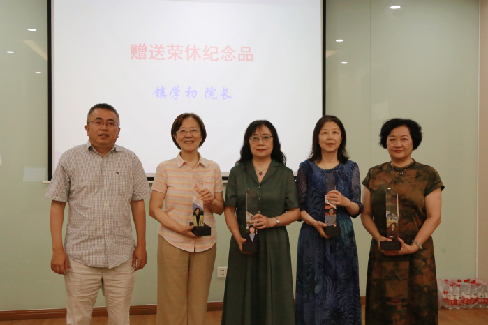 镇学初院长向荣休老师颁发纪念品,并祝愿各位老师的退休生活更加多姿多彩,幸福美满。