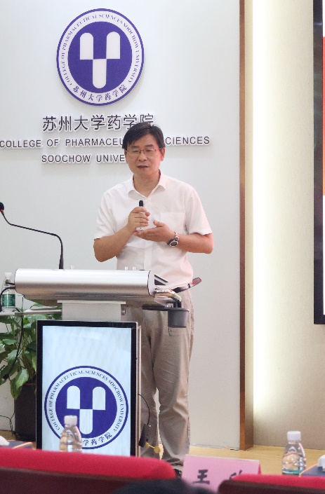 首先,药学院党委书记王欣致辞。王书记代表药学院党委对十八届研究生会在过去一年内开展的工作和取得的成绩表示充分肯定,对全体研究生会成员的辛勤付出表示感谢。他指出,研究生会作为学院与学生之间的桥梁纽带,不仅是学生自我管理、自我服务的重要平台,更是学院文化建设和高质量发展的重要支撑力量。他鼓励研究生会成员,在总结经验、复盘成果的基础上,继续发扬优良传统,勇于创新,不断突破,再创佳绩,为推动学院各项事业的蓬勃发展贡献研会力量。