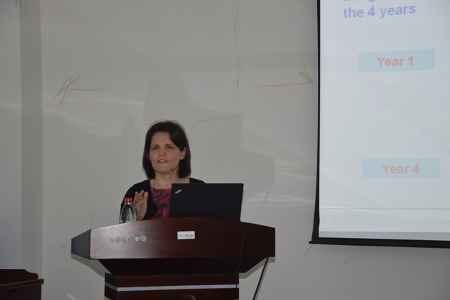 下午2点,Sally-Ann Cryan教授向药学院师生详细介绍爱尔兰皇家外科医学院药学院课程教学情况和科研工作概况。在场师生踊跃提问,就自己感兴趣的问题与外宾开展交流。