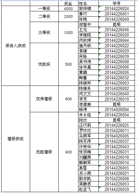 附件:2016年度“中联化学制药奖学金”获奖名单