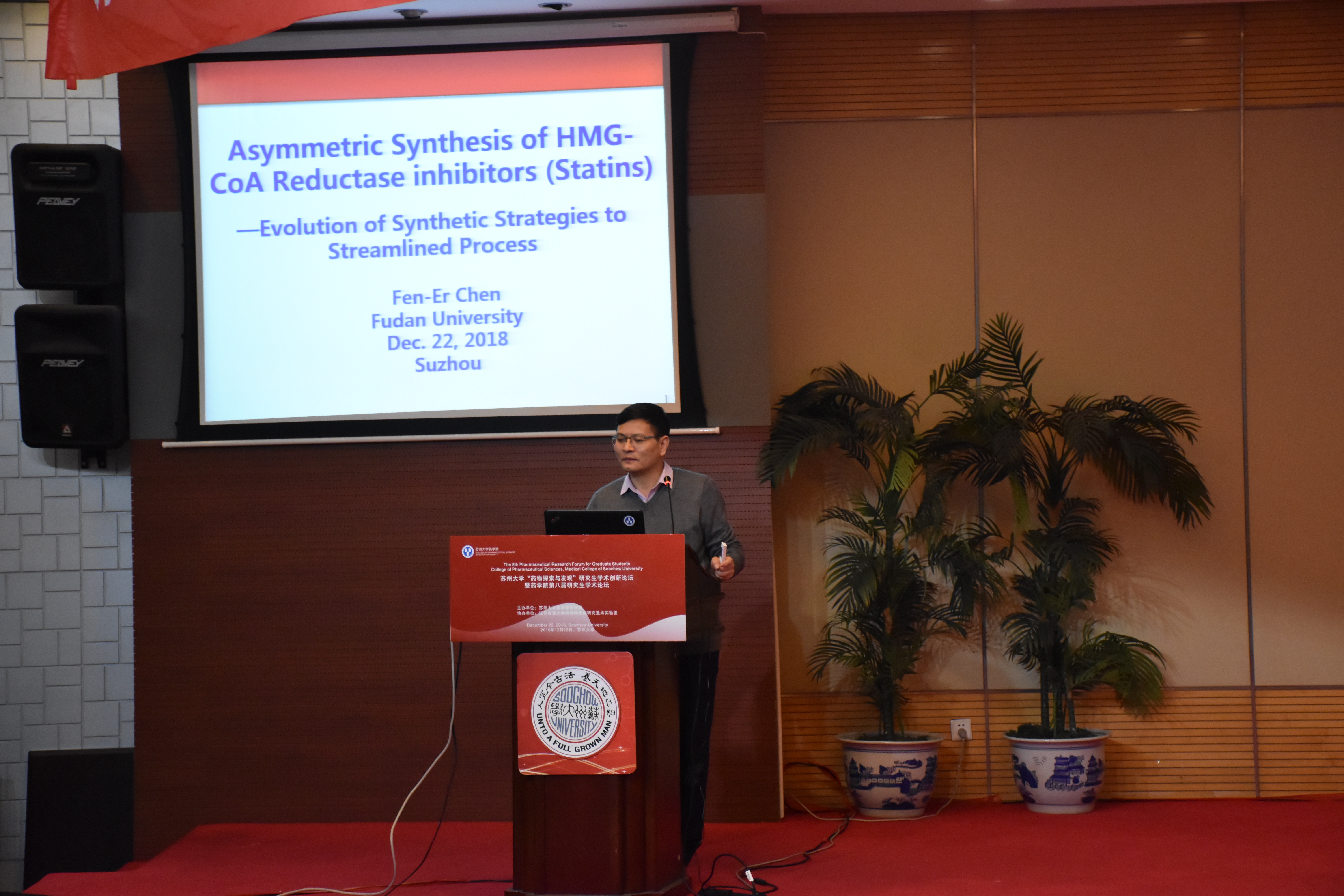 陈芬儿院士作了题为“Asymmetric Synthesis of HMG-CoA Reductase inhibitors (Statins)--Evolution of Synthetic Strategies to Streamlined Process”的学术报告,介绍了HMG-CoA还原酶抑制剂(他汀类)的不对称合成及简化工艺合成策略的演变,使得学院师生都获益匪浅。
