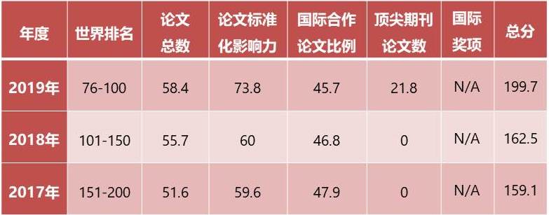 “软科世界一流学科排名”使用一系列国际可比的客观学术指标对全球大学在相关学科的表现进行测量,包括科研规模、科研质量、国际合作、高水平科研成果、国际奖项等。